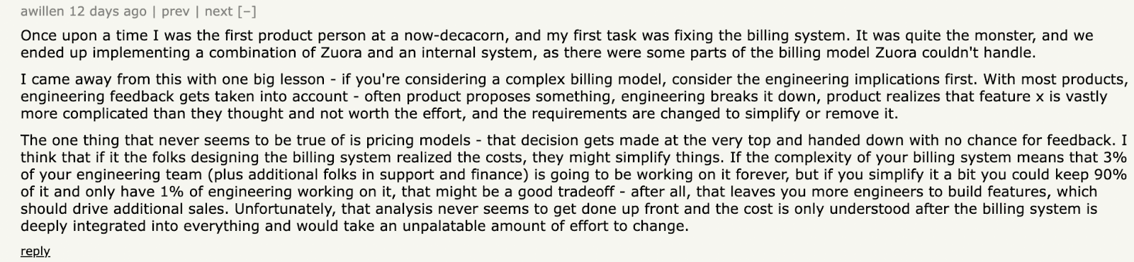 Our first principle is that billing is an engineering challenge. Its scope involves numerous teams: sales, finance, marketing, customer success. But the root cause of a billing system’s performance will always revolve around how engineers implemented and maintained it. Often, the billing system will fuel pricing decisions and business process design, not the other way around. As a result, backend engineers are the ones who suffer the most from implementing a pricing grid and its long tail of complex billing logics brought with it, that are rarely precisely specified.
