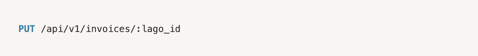 When an invoice is generated, its initial status is pending (i.e. awaiting payment).until you update the status. You can update the status of an invoice via the API, as illustrated below.