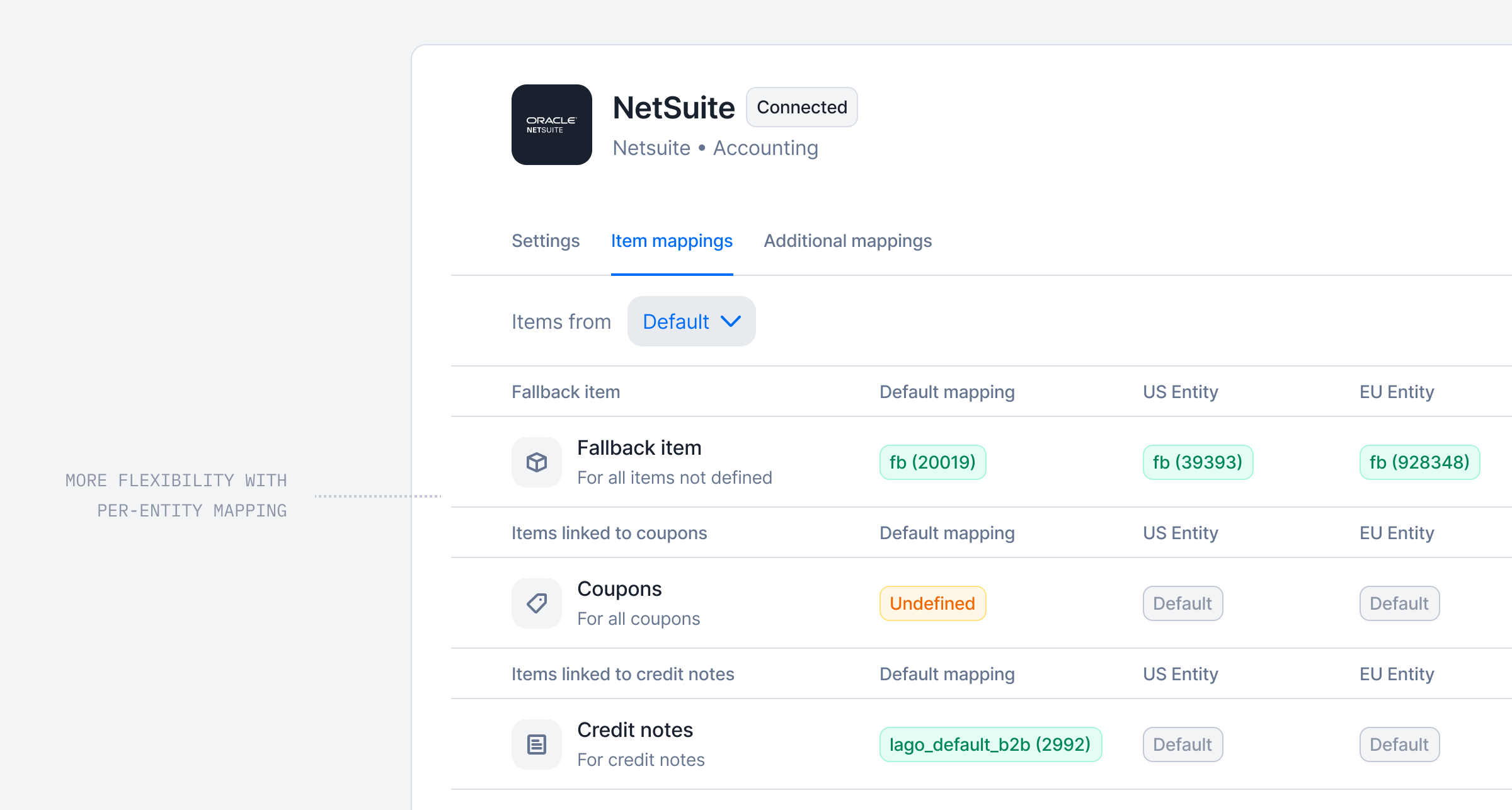 New integration mapping per Lago Billing Entity
