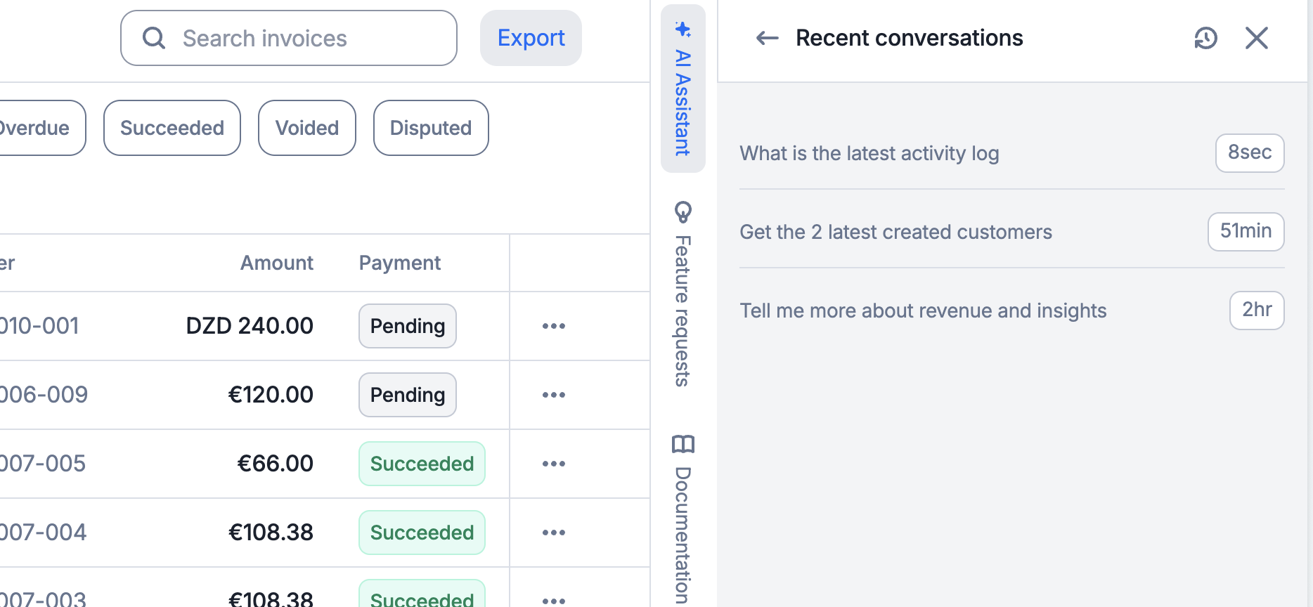 external_id, invoiceid, or useful identfiers when you have them; and - Chain tasks together: Complete related operations in one conversation to save time.