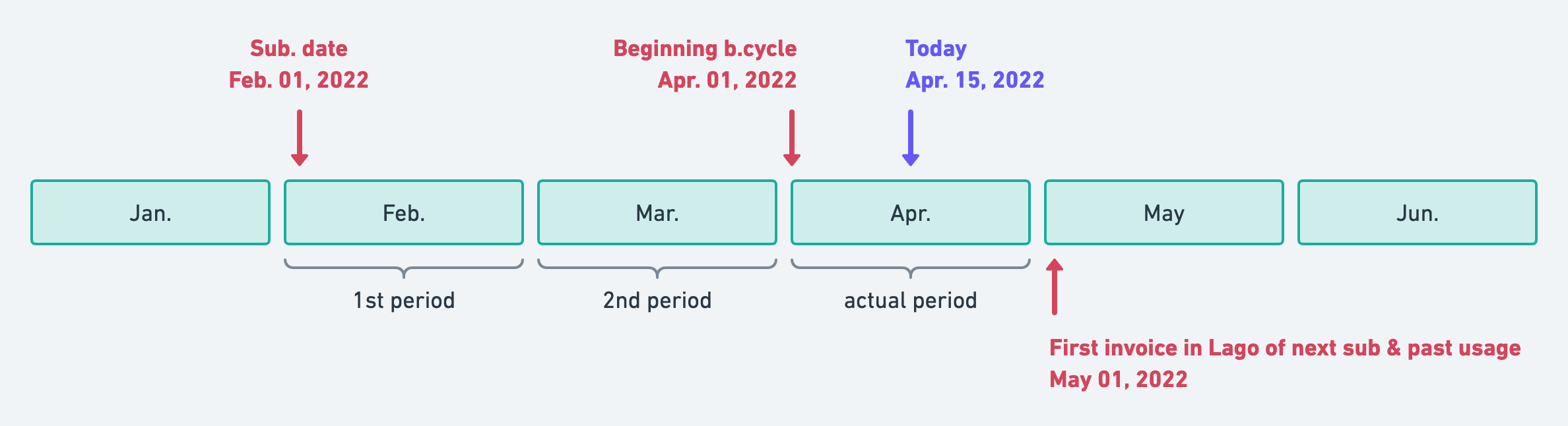 - If the plan includes a subscription fee to be paid in arrears, it will be included in the next invoice, together with the usage-based charges for the current period (see example 2 below).