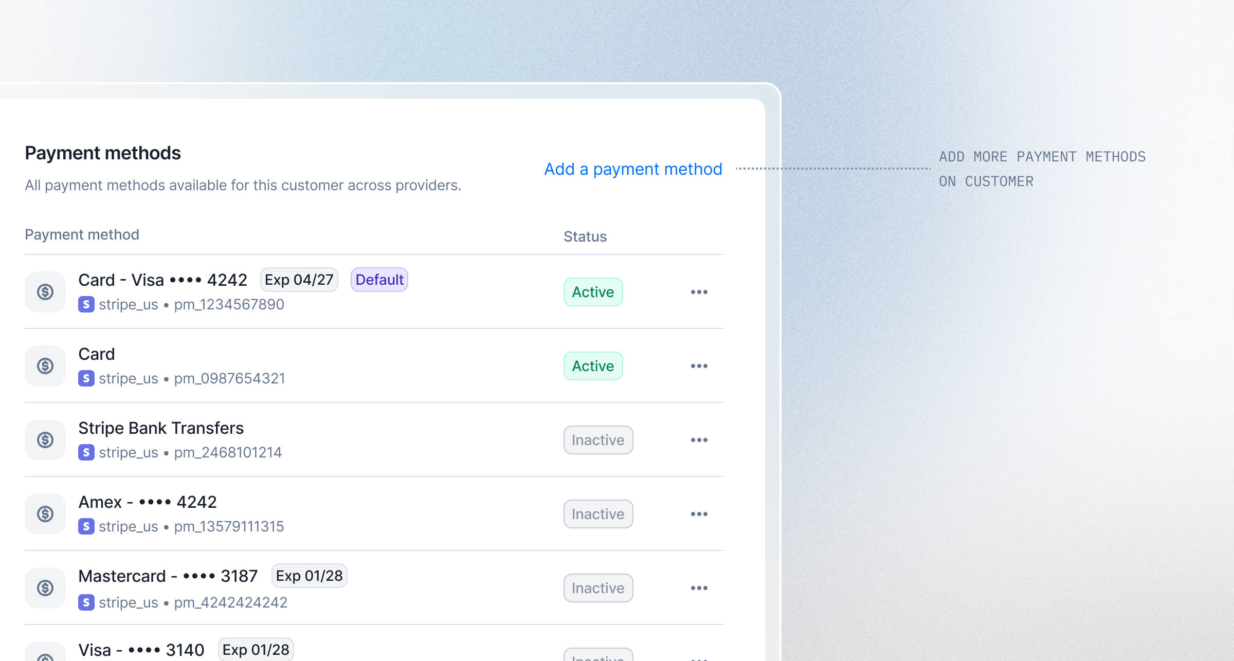 Multiple payment methods on customer (Beta)