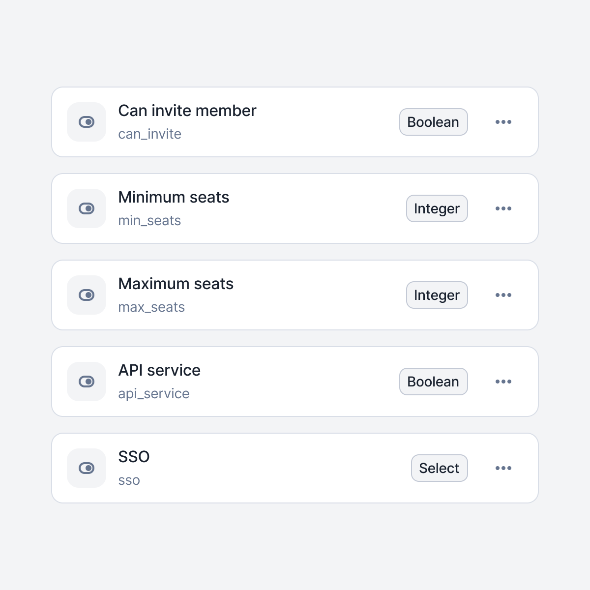 Attach features to plans so users automatically get access—or give custom entitlements for users or orgs without building yet another microservice.