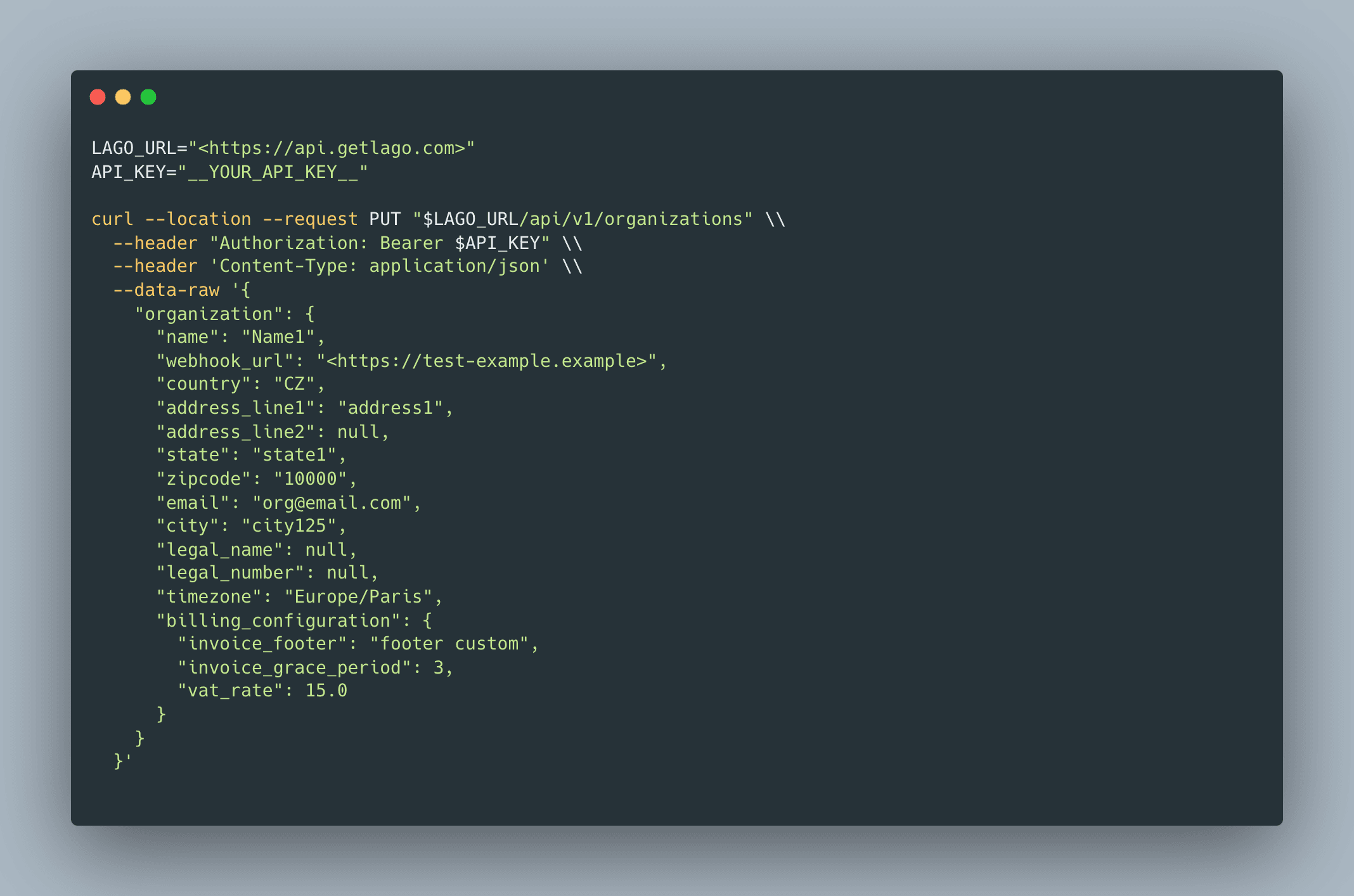 By default, Lago is ingesting usage and invoicing customers based on the system-wide UTC. However, you can decide to change the value at your organization level to make sure that every single customer is billed based on your timezone.