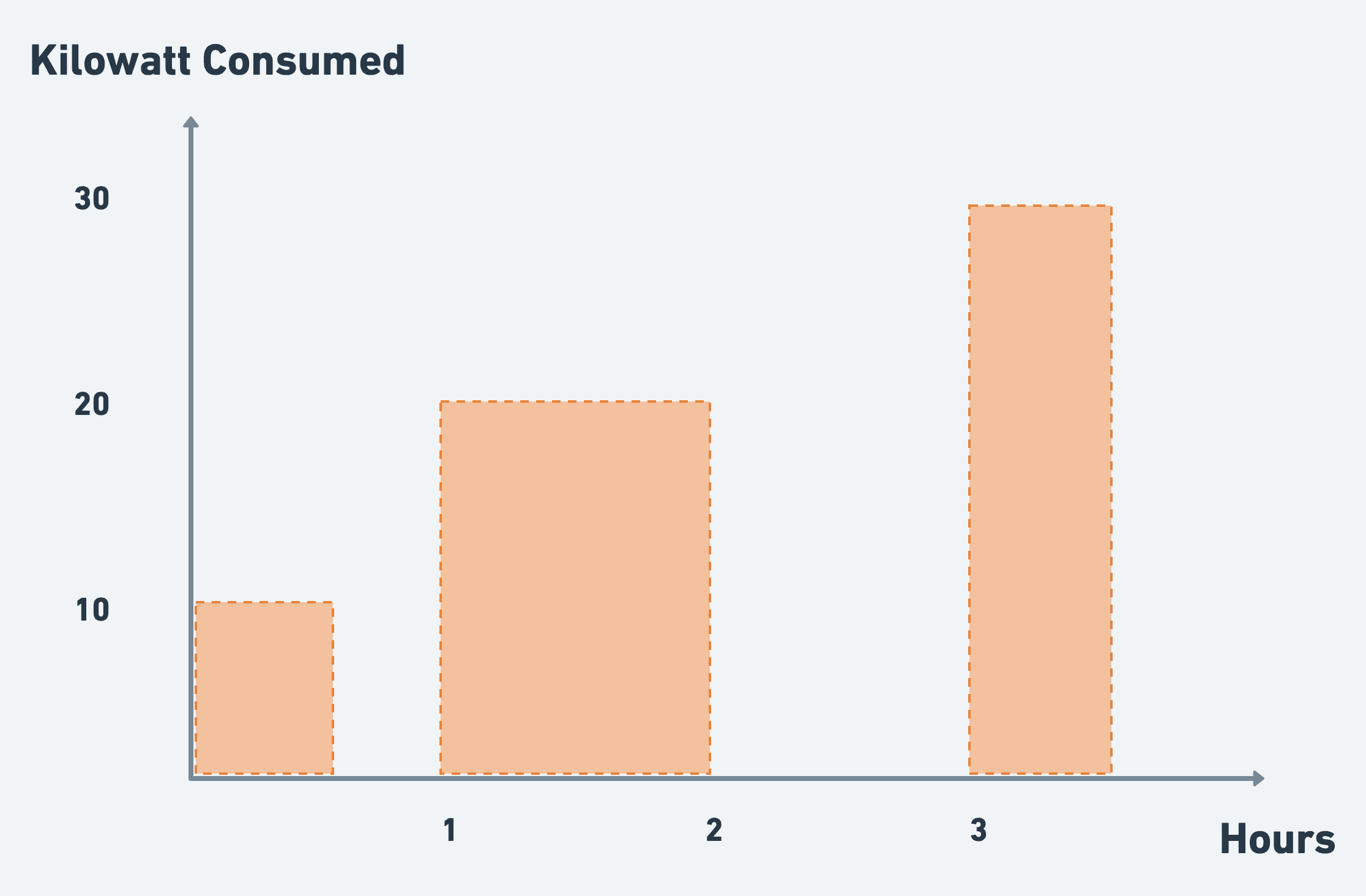 • Hour 2: 20 KW used for 1 hour = 20 KW (20 x 1)